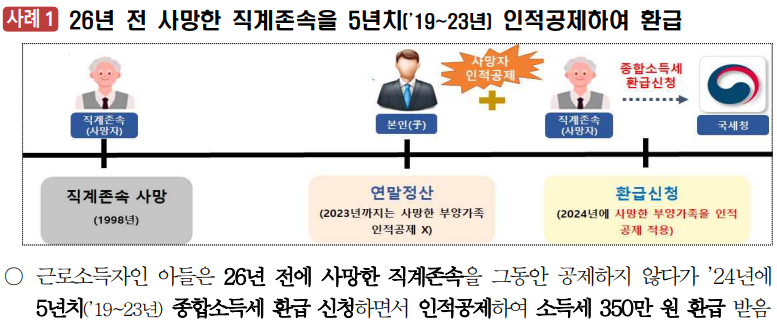 🚫 26년 전에 사망한 부모를 공제 항목에 넣어 5년 치 환급금으로 350만 원을 받은 사례