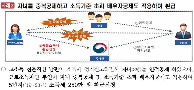 🚫 배우자와 자녀 공제를 중복해서 250만 원 환급을 받은 사례