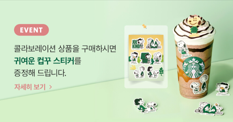 콜라보레이션 상품을 구매 시, 귀여운 컵꾸 스티커를 받을 수 있습니다.