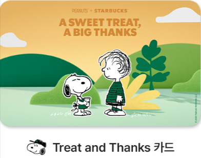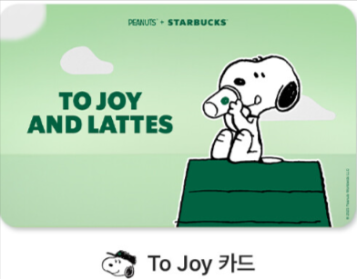 스누피 관련 온라인 전용카드 및 스타벅스 실물 카드도 만나볼 수 있는데요.
