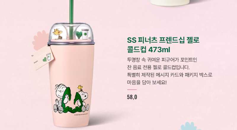 🌸 SS 피너츠 프렌드십 젤로 콜드컵 473ml – 58,000원