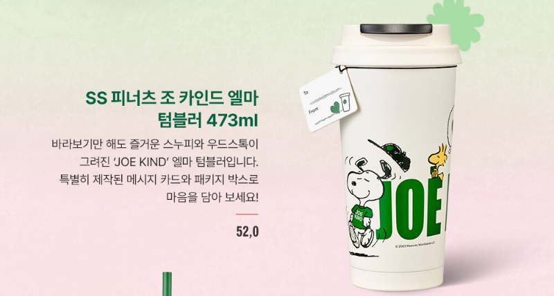 💚 SS 피너츠 조이 팬시 텀블러 355ml – 40,000원