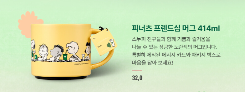 💛 피너츠 프렌드십 머그 414ml – 32,000원
