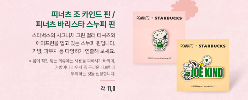 📌 피너츠 조 카인드 핀 / 피너츠 바리스타 스누피 핀 – 각 11,000원