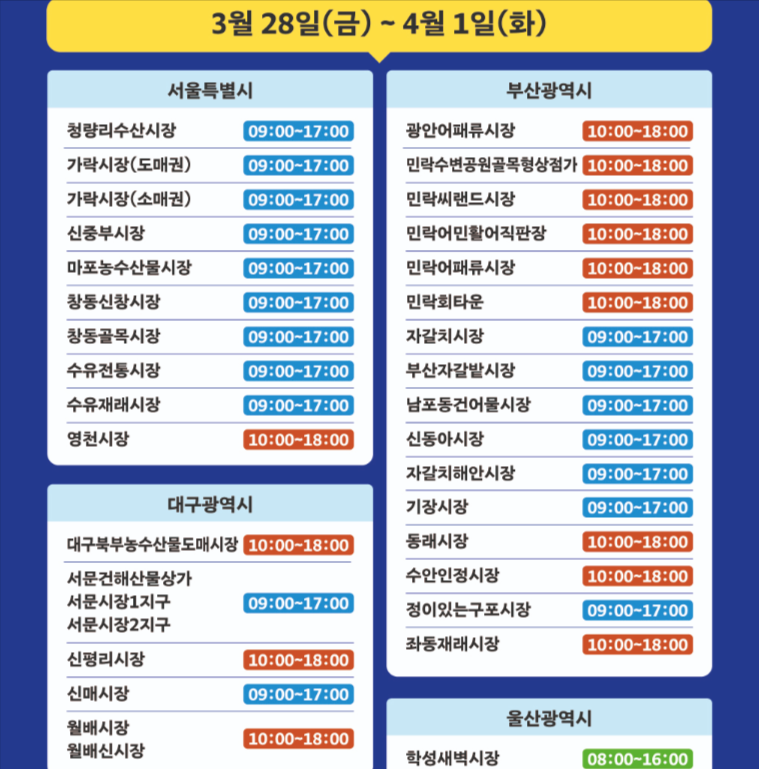 ✔ 행사 시간은 시장별 상이하므로 반드시 확인 후 방문하세요.