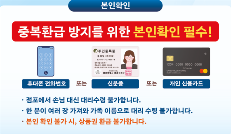 ✔ 환급 부스에서 본인 인증을 위해 이름, 연락처, 영수증 등이 요구됩니다. 수집된 정보는 행사 종료 후 파기되며, 개인정보보호법에 따라 안전하게 처리됩니다.