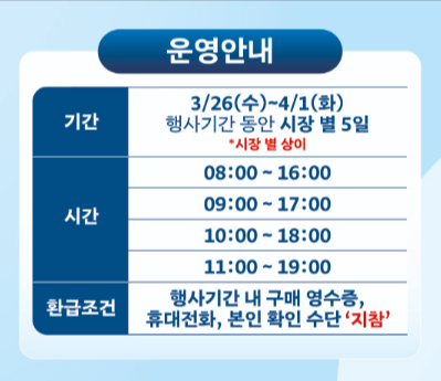 📌단, 시장별 행사 기간 및 시간이 다르기 때문에 꼭 확인이 필요합니다.