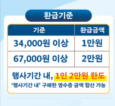 ✔ 환급 금액 : 34,000원 이상 구매 시 1만원 환급 / 67,000원 구매 시 2만원 환급