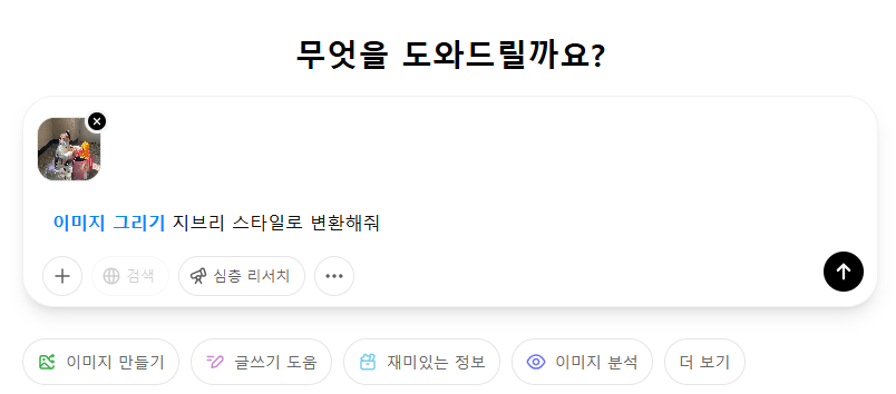 -> "지브리 스타일로 변환해줘" 프롬프트 입력